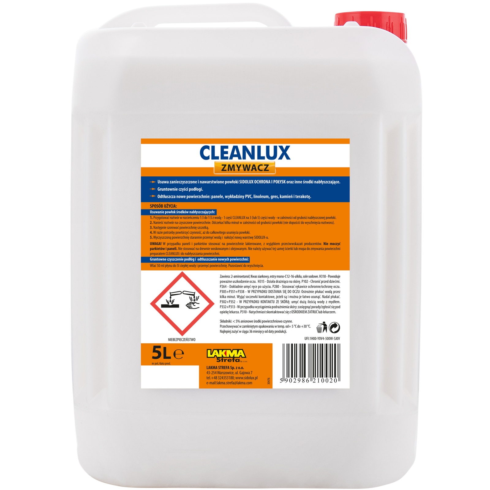 Produkt Cleanlux perfekcyjnie nadaje się do gruntownego czyszczenia podłóg i odtłuszczania nowych powierzchni poprzez rozcieńczenie produktu w stosunku 1:100 z wodą.