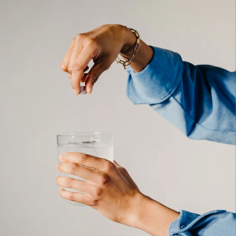 - Otwórz opakowanie Waterdrop i wrzuć kostkę do wody