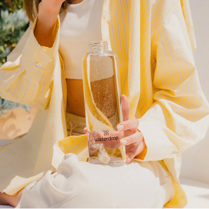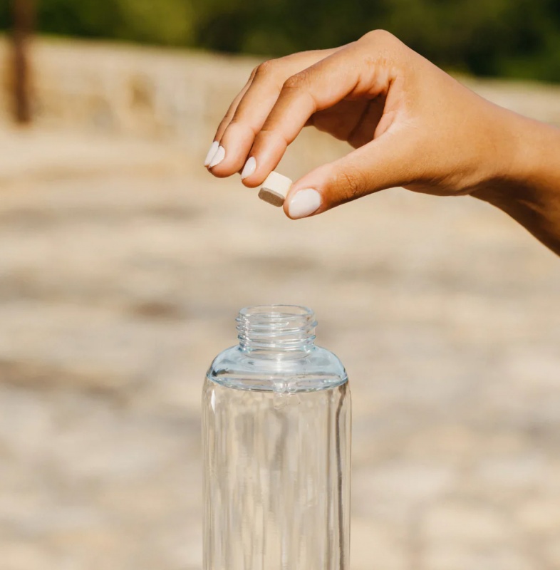 - Otwórz opakowanie Waterdrop i wrzuć kostkę do wody