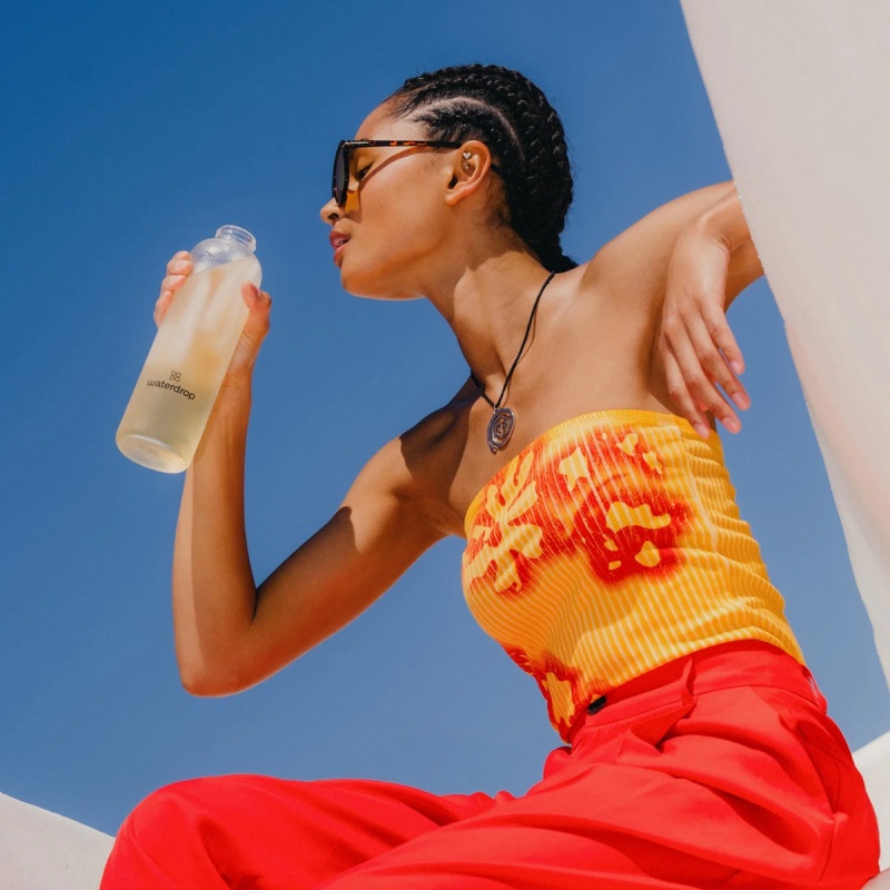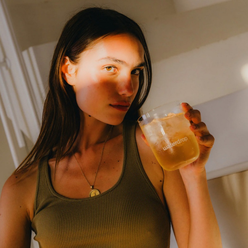 - Otwórz opakowanie Waterdrop i wrzuć kostkę do wody