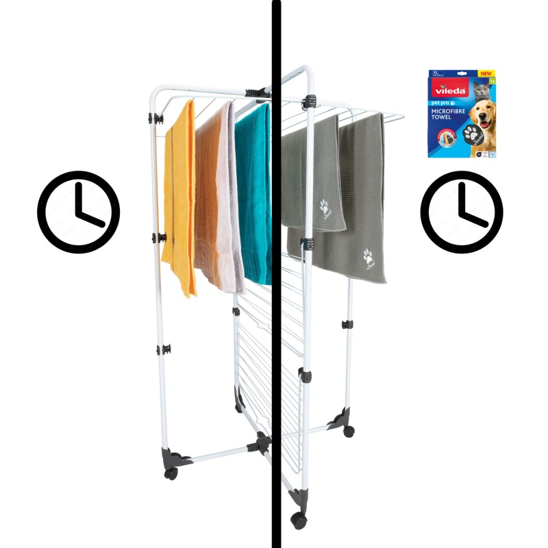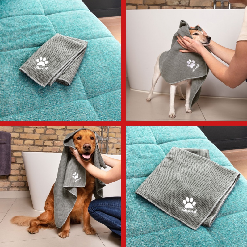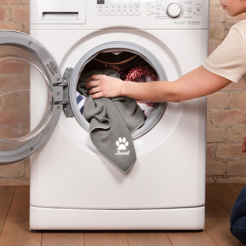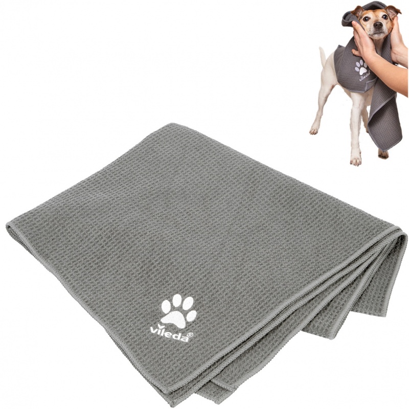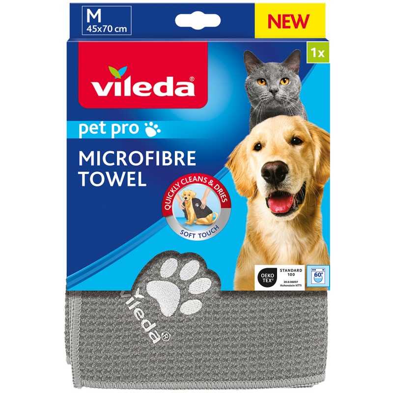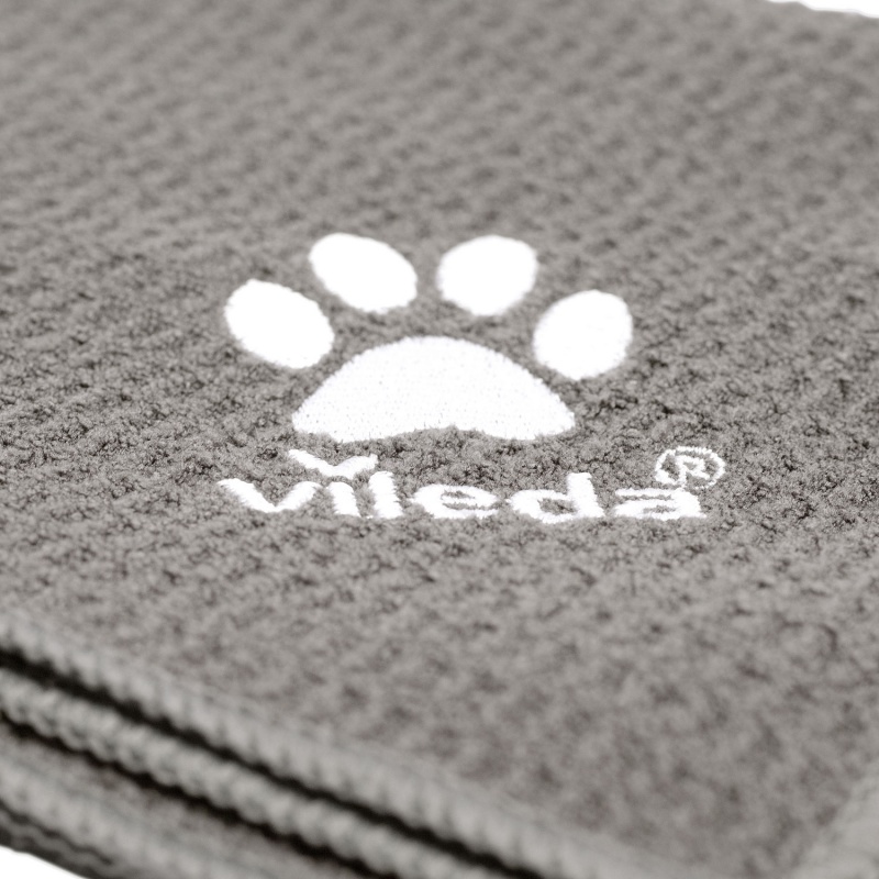 Dzięki ręcznikowi z mikrofibry Vileda Pet Pro można skutecznie wytrzeć zwierzaka po kąpieli lub spacerze. Ręcznik szybko wyciera i osusza czworonoga dodatkowo zapobiegając mokremu bałaganowi w domu. Jest trwały i można go prać w pralce w temperaturze do 60°C..