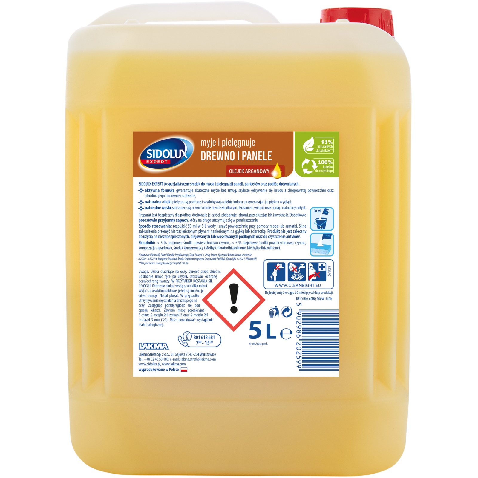 Dodatek do produktu naturalnego ekstraktu z Olejku Arganowego zabezpiecza zarówno panele i drewno przed niszczącym działaniem wody. Ponadto pielęgnuje czyszczone powierzchnie.