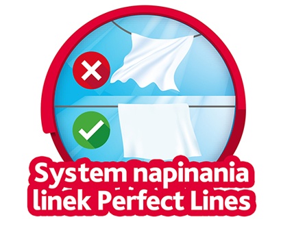 - Posiada 40 m linek, dzięki czemu pomieści nawet do trzech pełnych prań.
