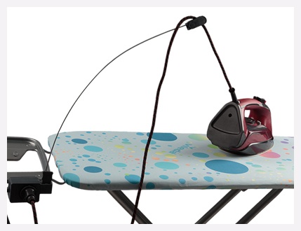 - Rozkładana antena na przewód od żelazka zapobiega plątaniu się przewodu w trakcie prasowania.