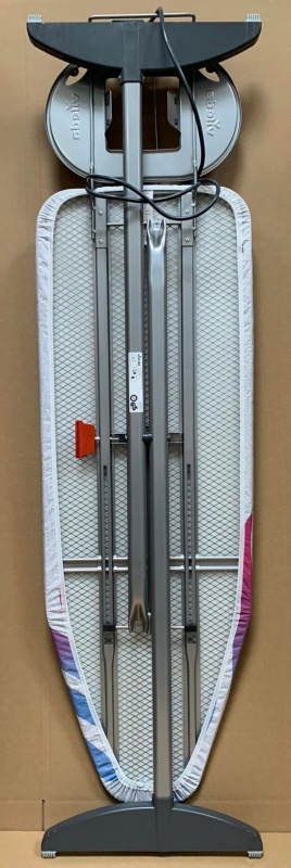 Produkt jest wyposażony w dużą podstawkę pod żelazko lub stację parową, gniazdko elektryczne oraz antenkę podtrzymującą przewód żelazka.