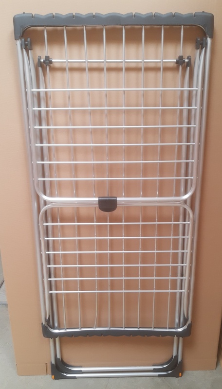 Suszarka jest produktem outletowym. Posiada lekkie wygięcie oraz drobne zarysowania. Nie posiada oryginalnego opakowania. Uszkodzenia widoczne na zdjęciach. Suszarka jest produktem sprawnym , spełniającym swoje podstawowe funkcje.