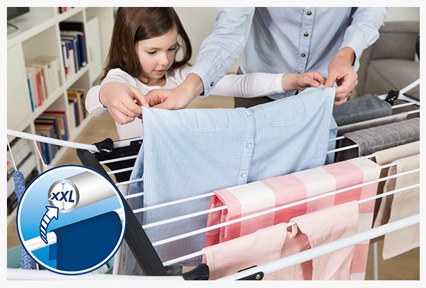 Większe alumniniowe druty chronią pranie przed powstawaniem zagnieceń, dzięki czemu możesz znacznie zaoszczędzić czas na prasowaniu.