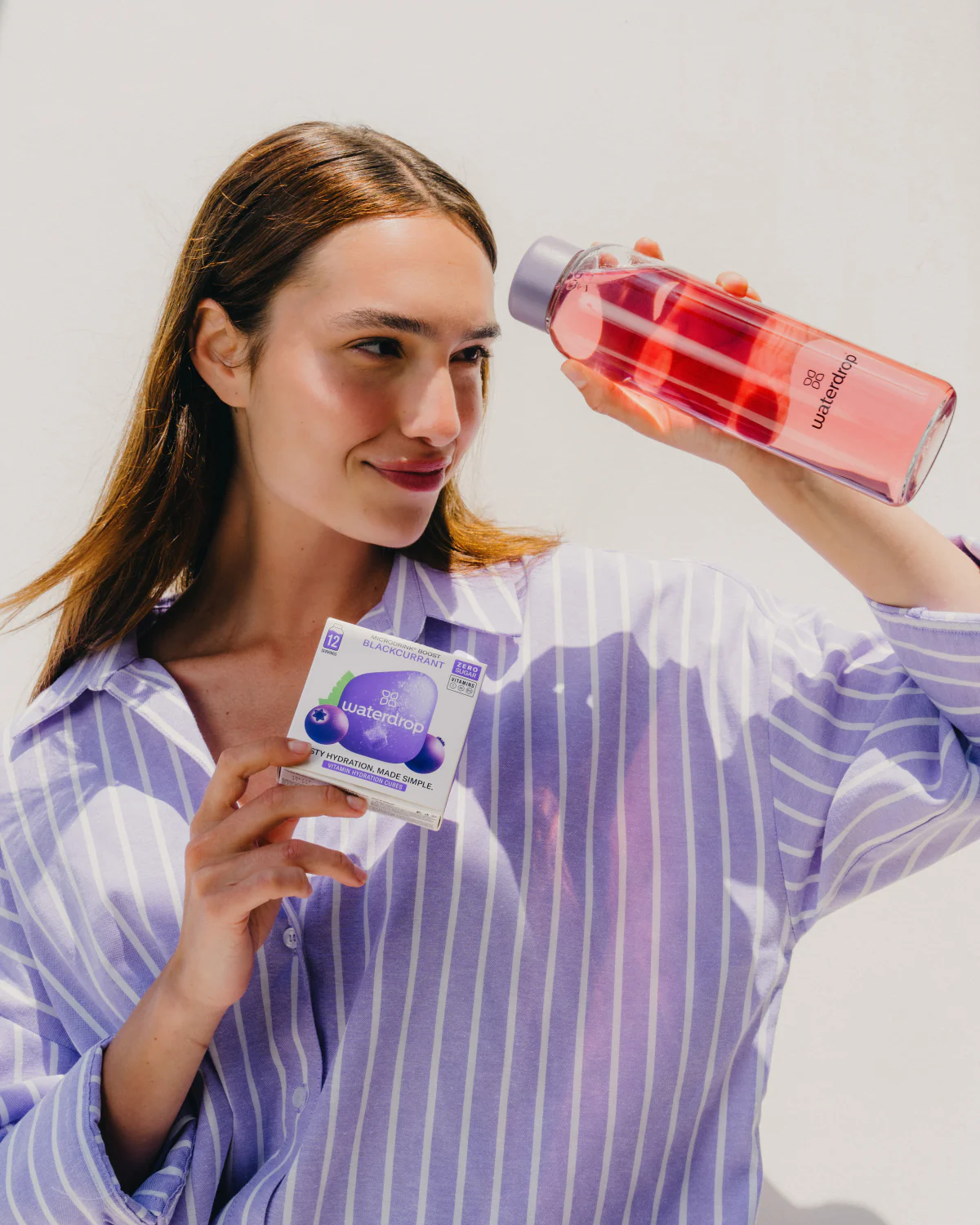 - Otwórz opakowanie Waterdrop i wrzuć kostkę do wody