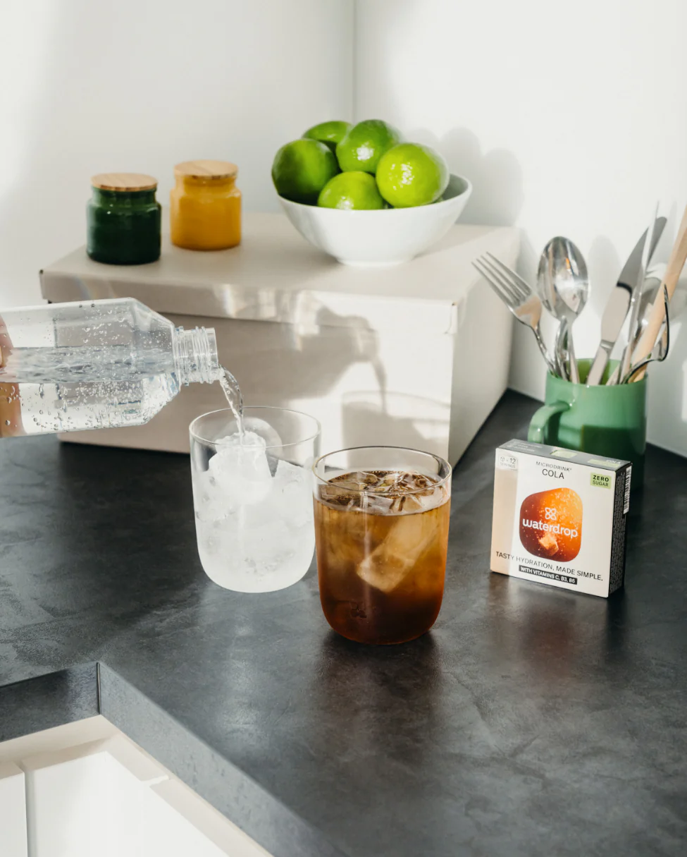 Otwórz opakowanie Waterdrop i wrzuć kostkę do wody
